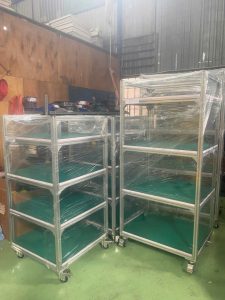 Bàn thao tác AKAGITECH sử dụng khung Plastic coated steel pipe working table (ống thép bọc nhựa) hoặc nhôm định hình, giúp: